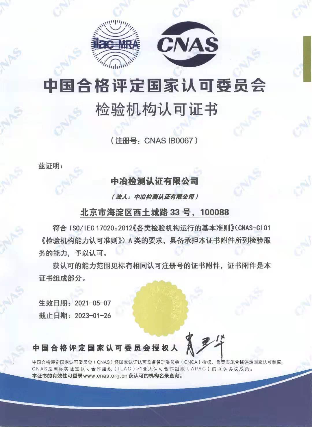 檢驗(yàn)機(jī)構(gòu)認(rèn)可證書(shū)
