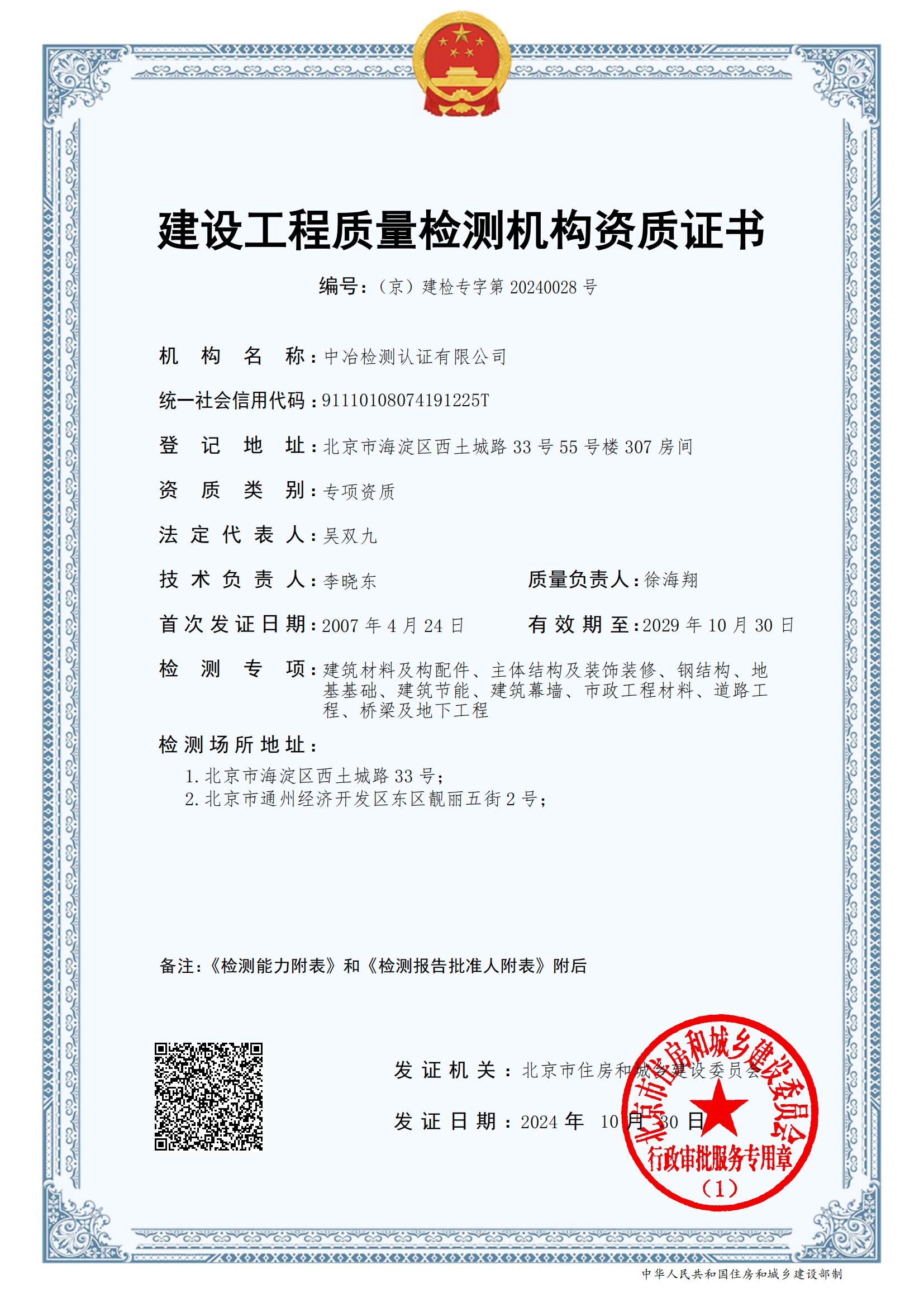 國(guó)家工業(yè)建構(gòu)筑物質(zhì)量安全檢驗(yàn)檢測(cè)中心