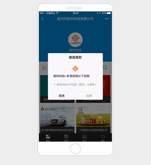 打開(kāi)小程序后自動(dòng)提示獲取微信授權(quán),即時(shí)獲取用戶微信ID等信息,短時(shí)間內(nèi)獲得高質(zhì)量的會(huì)員(粉絲),通過(guò)后臺(tái)用來(lái)做后續(xù)處理,提供營(yíng)銷策劃的更多可能性。