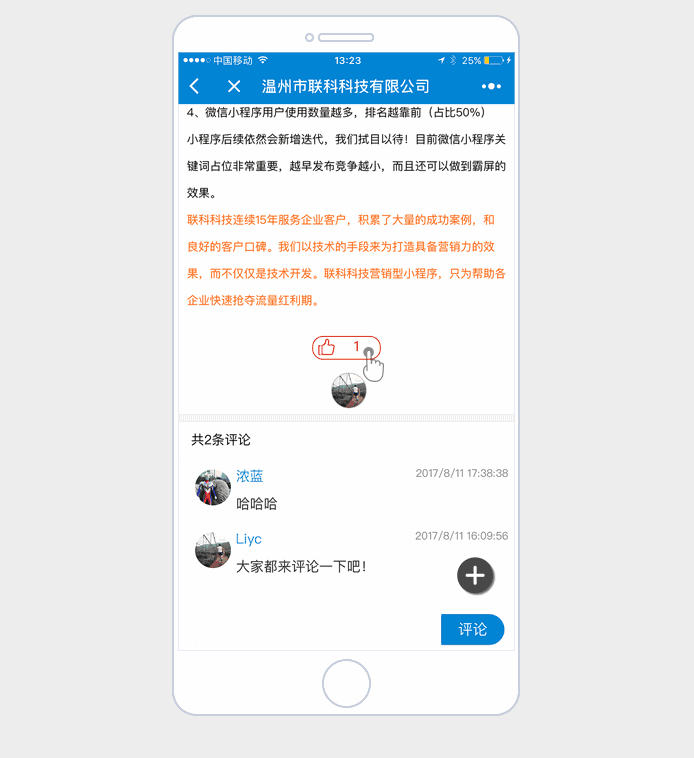 實(shí)現(xiàn)對(duì)某篇文章或內(nèi)容進(jìn)行點(diǎn)贊并統(tǒng)計(jì),與用戶產(chǎn)生交互關(guān)系,提高用戶粘度。